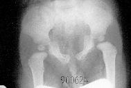 and soft tissue shortening of right hip". Such X-ray picture in infants or